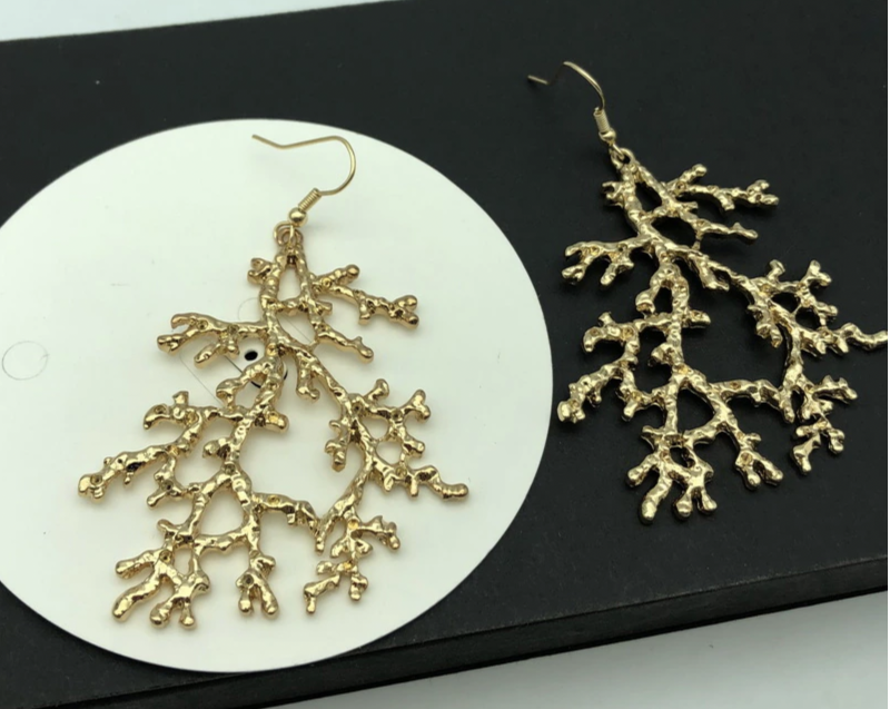 BOUCLE D'OREILLE  FORME DU CORAIL BOHO BOHEME CHIC . METAL DORE SANS NICKEL. Hauteur...