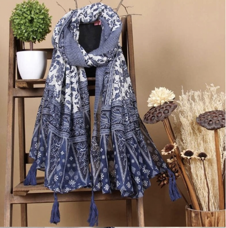 Cette écharpe foulard imprimé feuilles ginko ethnique boho boheme chic, une touche de...
