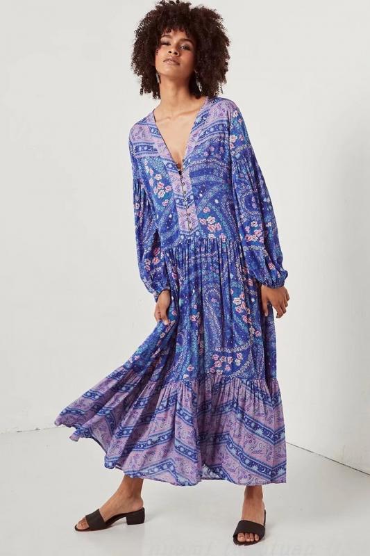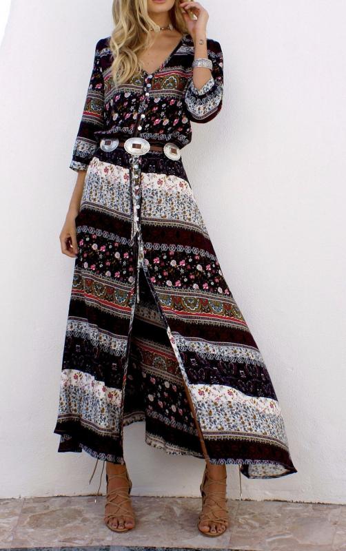 Robe longue imprimée boutonnage marque boho boheme chic dressl1204