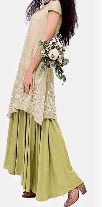 JUPE LONGUE BASIQUE EFFET SUPERPOSE BOHO BOHEME CHIC. TAILLE 36/44: longueur :  87 cm environ,...