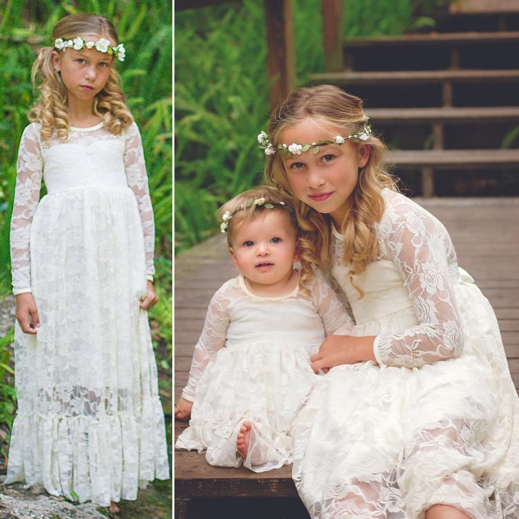 Robe petite fille dentelle longue boho boheme chic dresspf1196