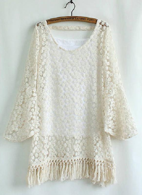 TUNIQUE ROBE ORGANZA DENTELLE FRANGES CELEBRITES HIPPIE BOHO CHIC BOHEME. AVEC DOUBLURE SEPAREE INTERIEURE...