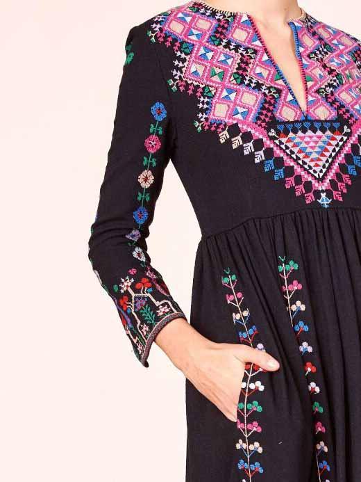 Robe mi longue rétro velours ras marque boho boheme chic DRESSL0621