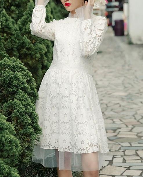 Robe mi longue dentelle haute qualité boho boheme chic dressl0787