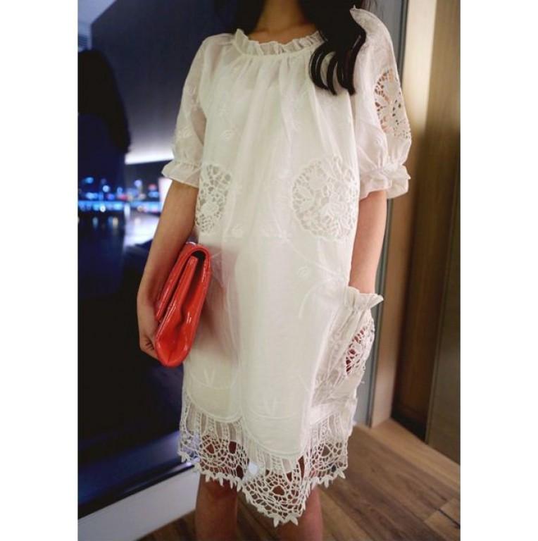 Robe blanche coton brodé boho boheme chic DRESS1008