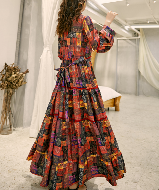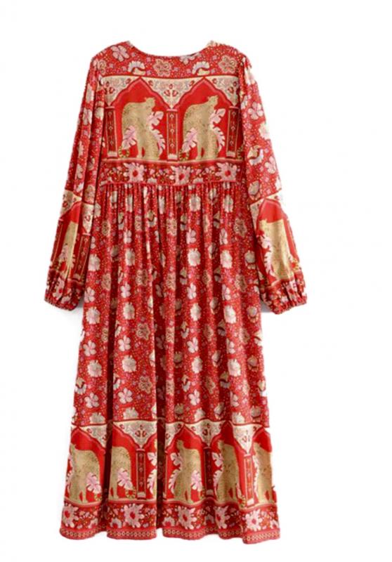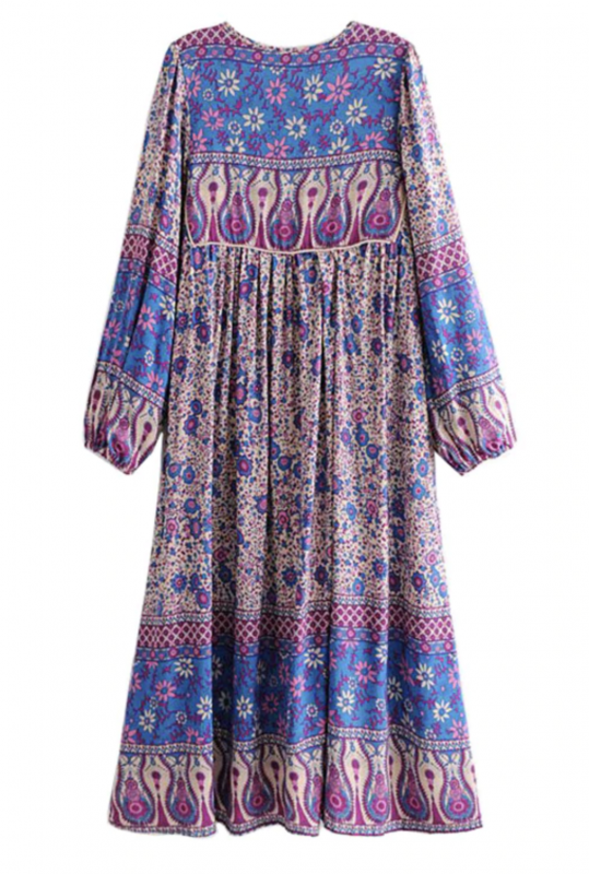 Robe longue imprimé vintage boho boheme chic DRESSL0925