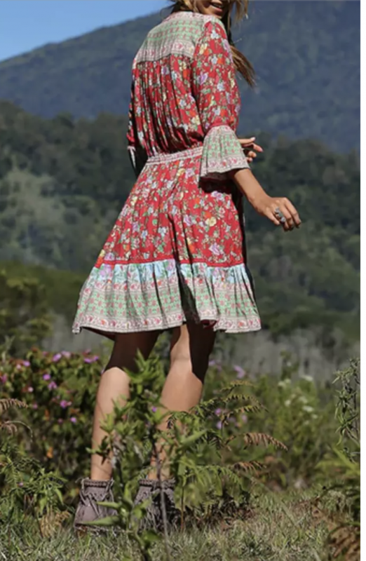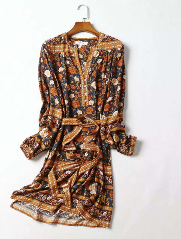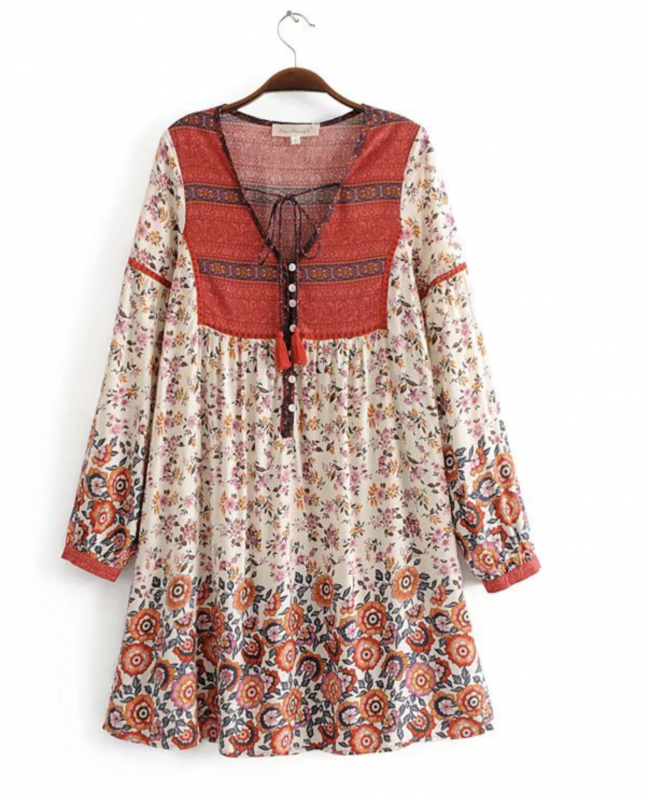 Robe ample imprimée fleurs boho boheme chic dress0865
