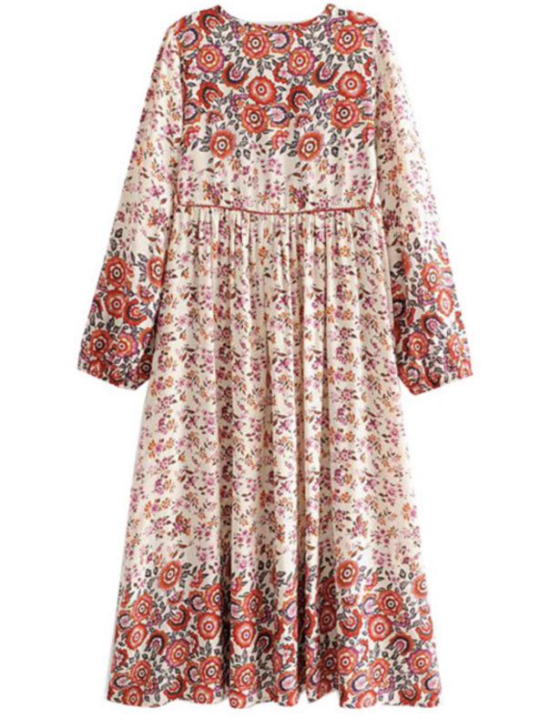 Robe mi longue imprimée fleurs boho bohème chic DRESSL1700