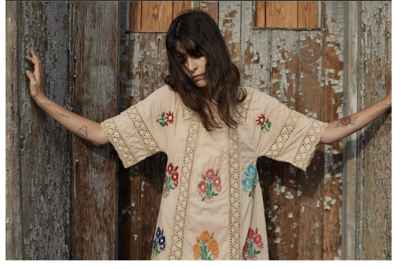 Robe brodée courte tunique épaules dénudées boho boheme chic DRESS1603