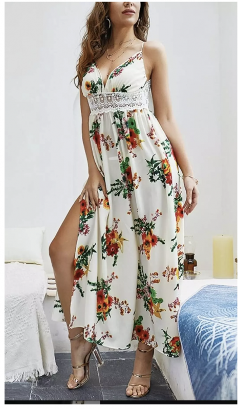Robe longue imprimée fleurs boho bohème chic DRESSL1560