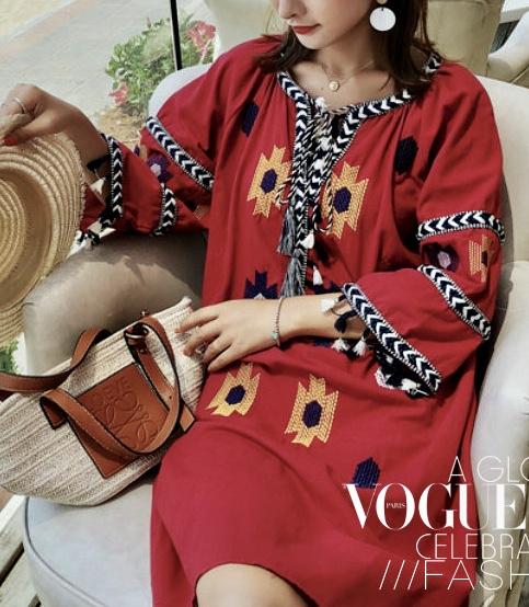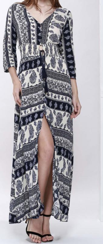 Robe mi longue rétro boho boheme chic célébrités dressl1268