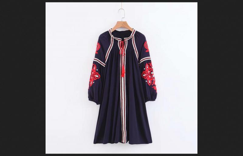 Robe mi longue brodée boho bohème chic DRESSL1537