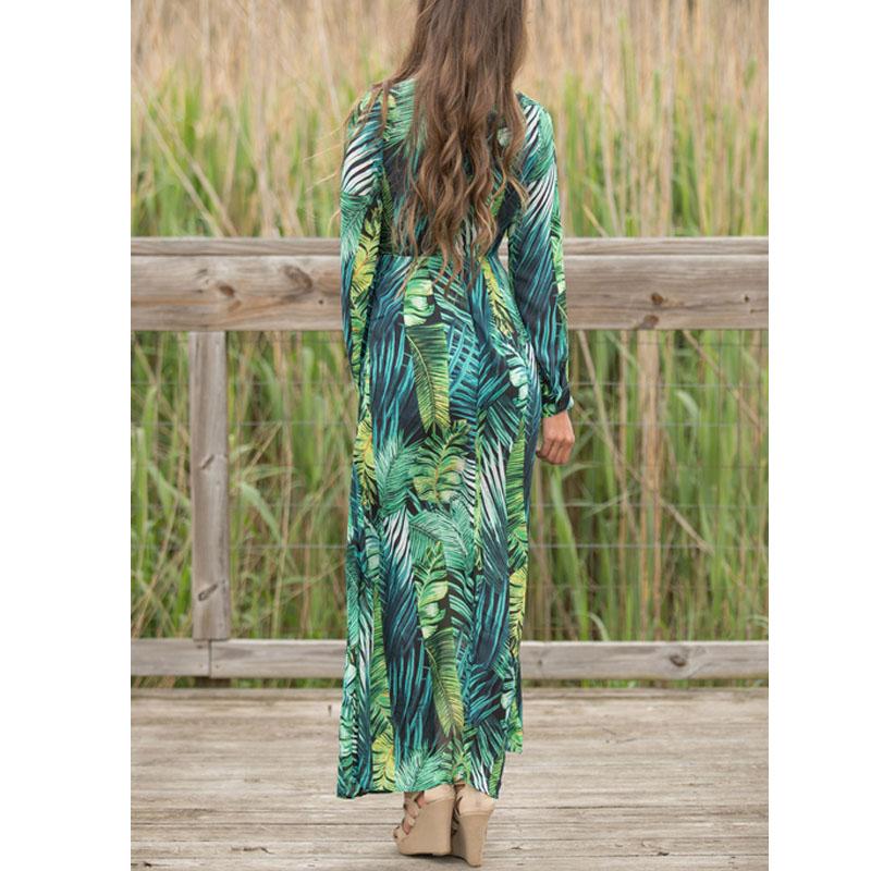 Robe longue imprimée fleurie portefeuille boho boheme chic DRESSL1751