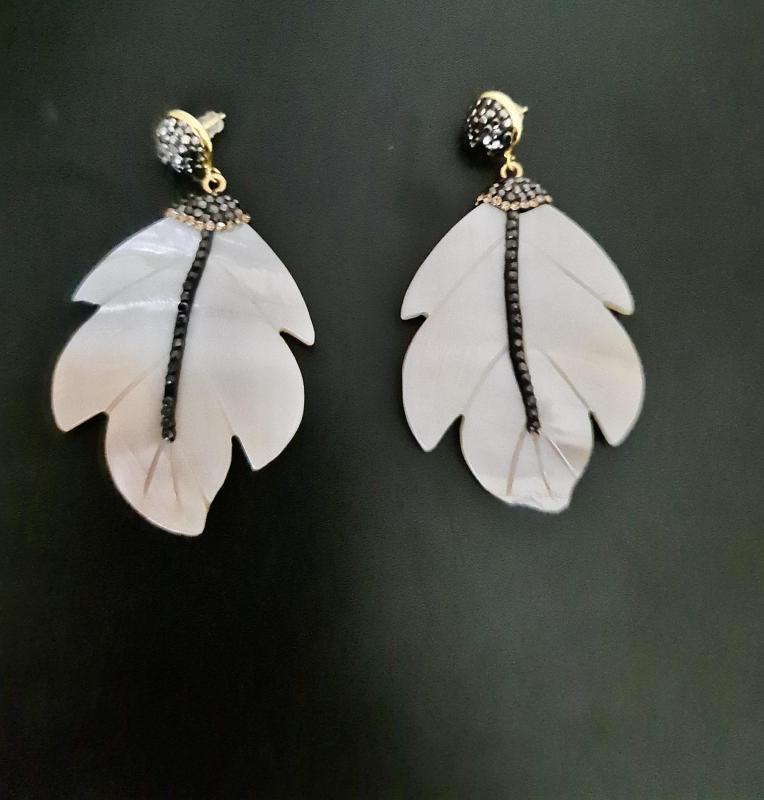Boucles d'oreilles feuille nacre boho boheme chic BO0784
