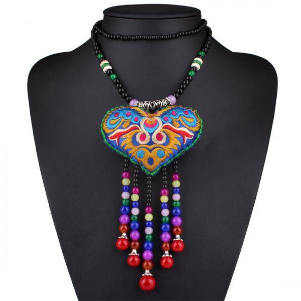 Collier coeur tissu brodé boho boheme chic neck0788