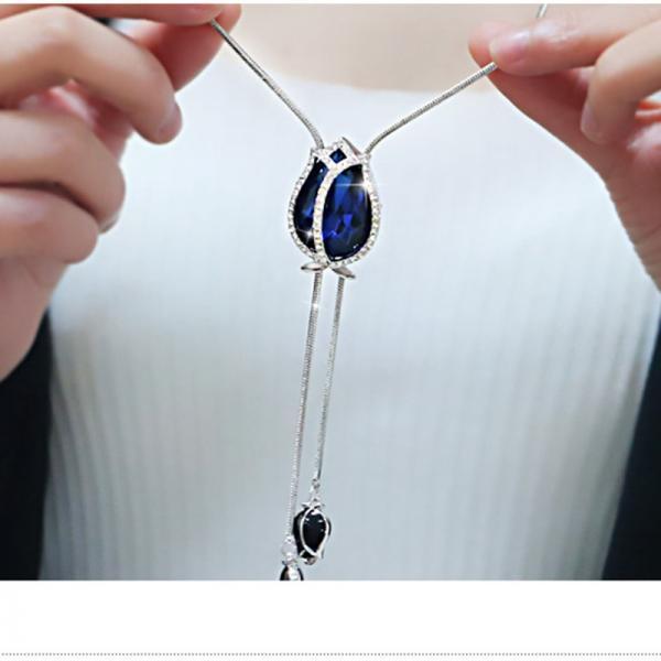 Collier sautoir tulipe bleue strass boho boheme chic NECK0753