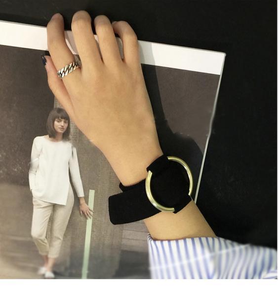 Bracelet boucle dorée tissu noir boho boheme chic bangle0738