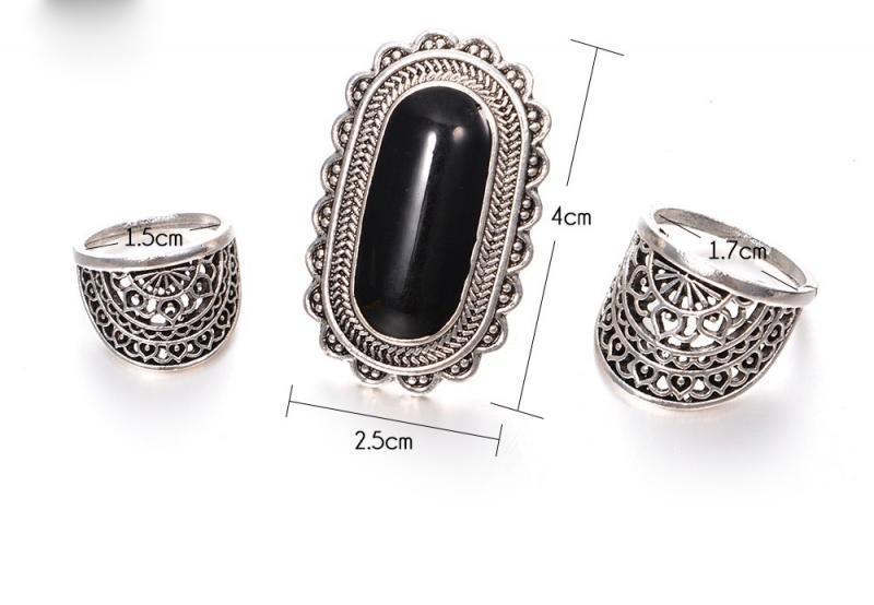 3 bagues argent vieilli boho boheme chic RING0743