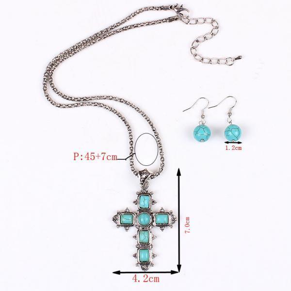 Collier turquoises croix + BO boho boheme chic NECK0765