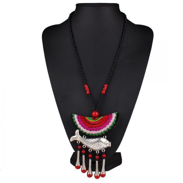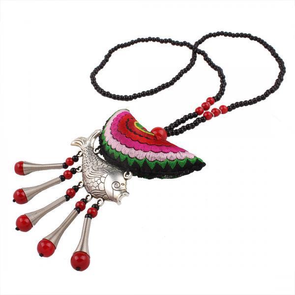 Collier tissu brodé fish boho boheme chic NECK0775