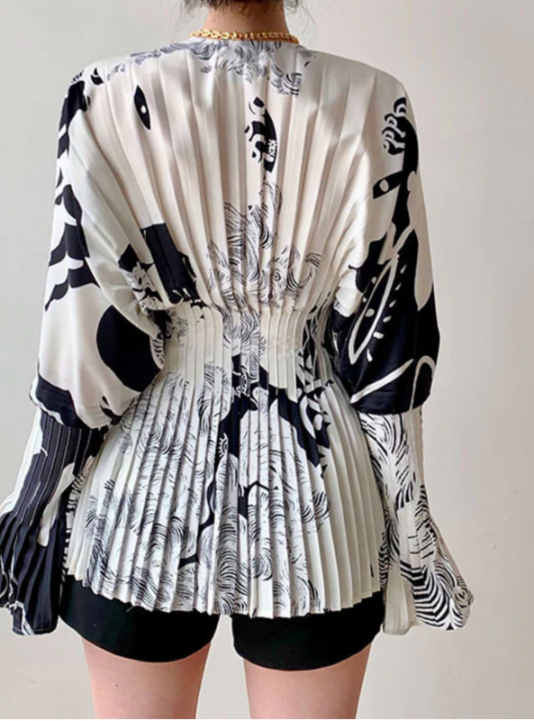 Blouse imprimé noir et blanc boho boheme chic BLOUSE0547