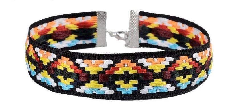Collier ras de cou tissu brodé boho boheme chic NECK0772