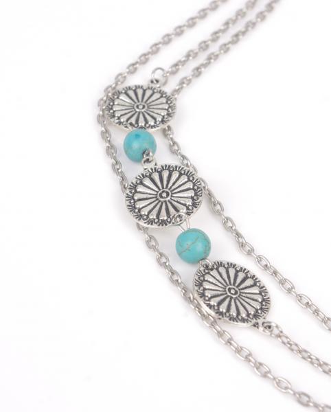 Bracelet cheville argenté turquoises boho bohème chic BIJ0711