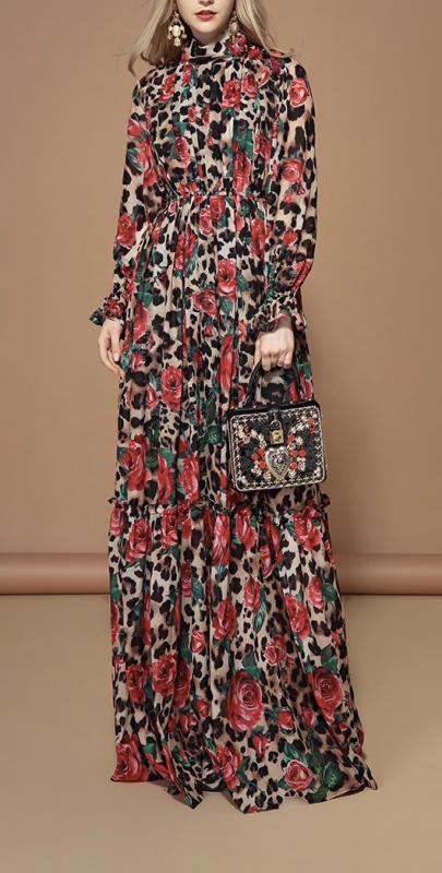 Robe très longue haute qualité fleurs léopard soie boho boheme chic DRESSL1684