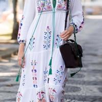 Robe longue brodée marque boho boheme chic DRESSL1363