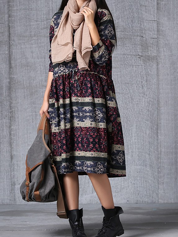 Robe mi longue imprimé ethnique boho boheme chic dressl1170