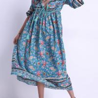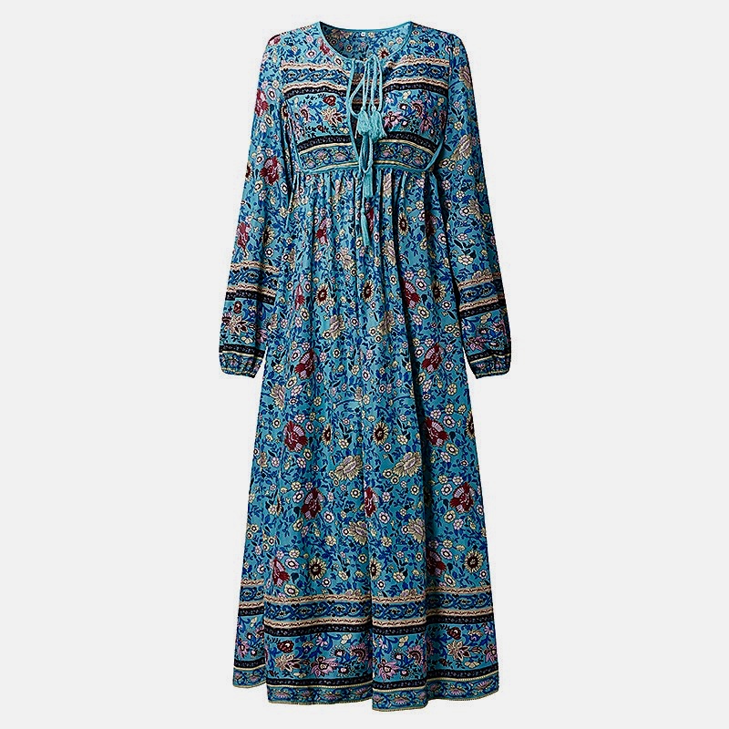 Robe mi longue imprimé fleurs hippie boho boheme chic dressl1310