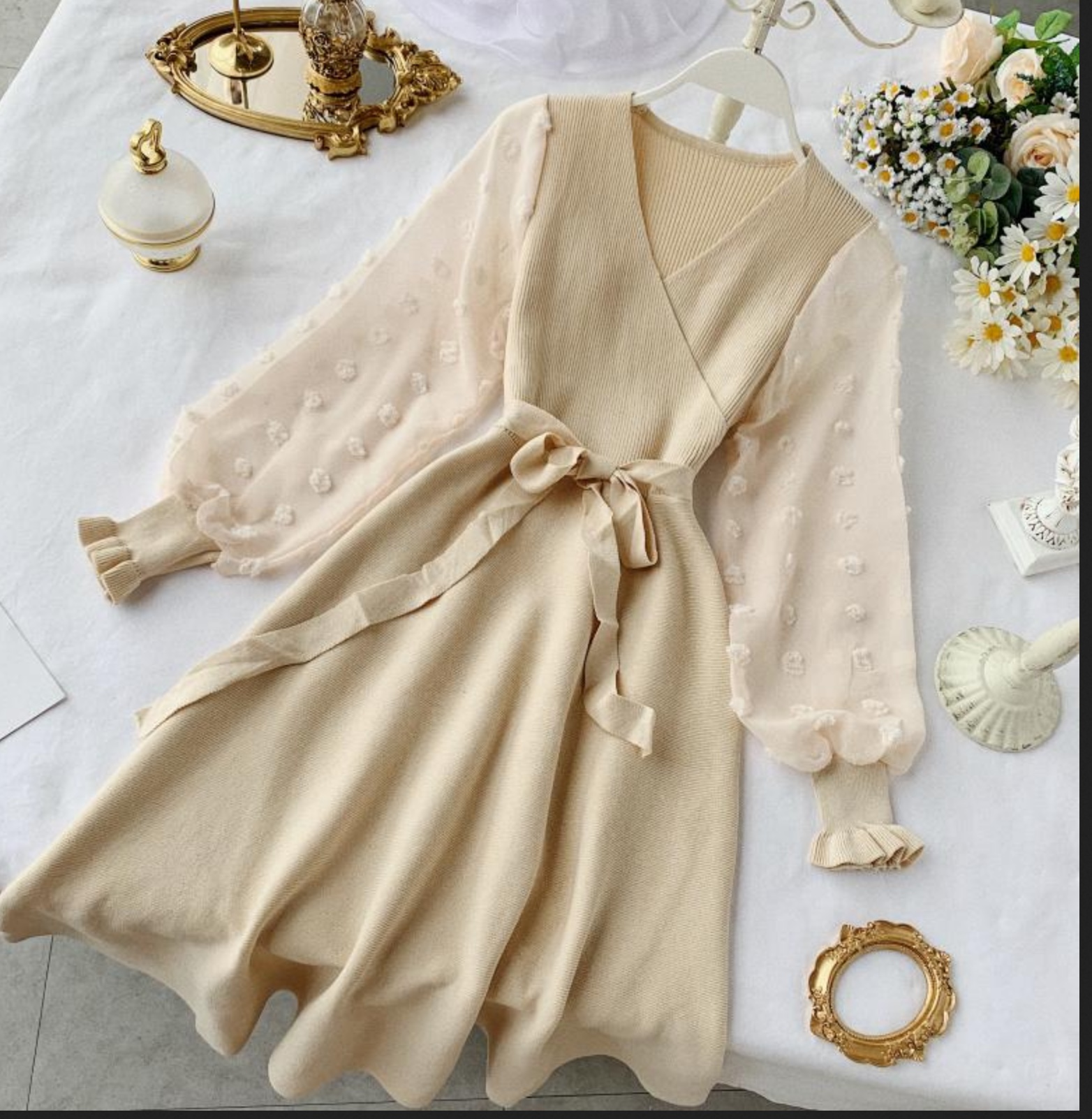Robe pull manches voile mi longue boho boheme chic DRESSL1715