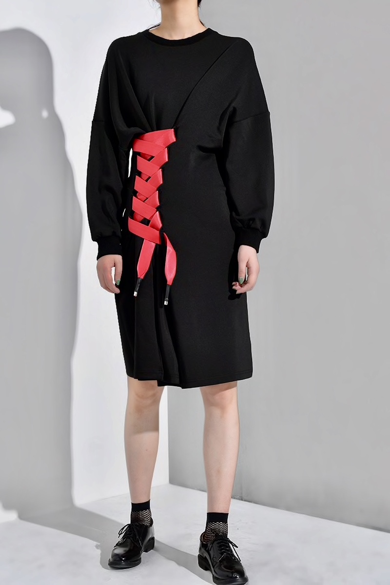 Robe sweater laçage rouge boho bohème chic DRESSL1681