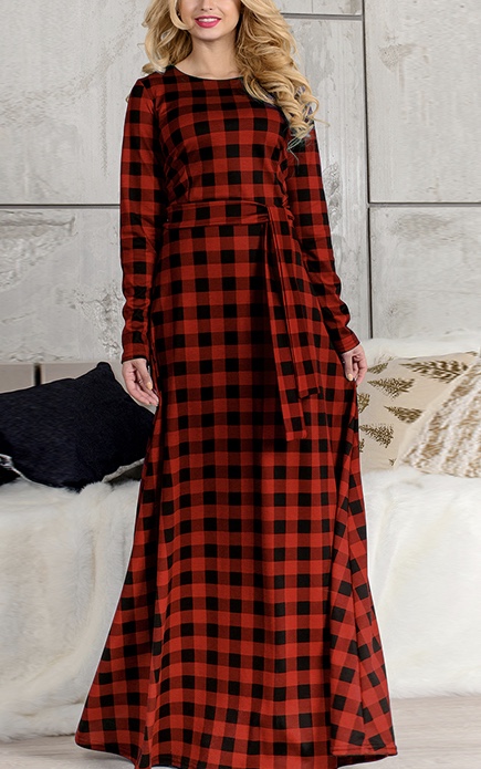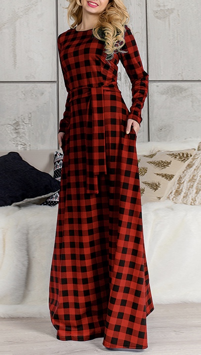 Robe très longue carreaux boho boheme chic DRESSL1324