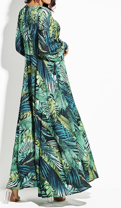 Robe très longue imprimée feuillages marque boho boheme chic DRESSL1632