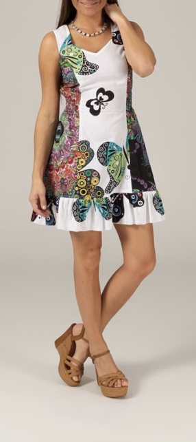 ROBE IMPRIMEE PAPILLONS COURTE COTON BOHO BOHEME CHIC.