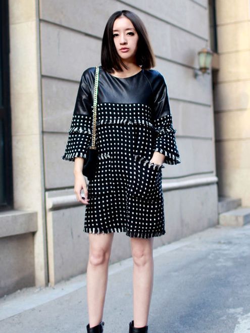 Robe courte bi matière faux cuir boho boheme chic dress0475