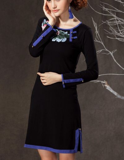 Robe mi longue brodée boho boheme chic DRESS0504