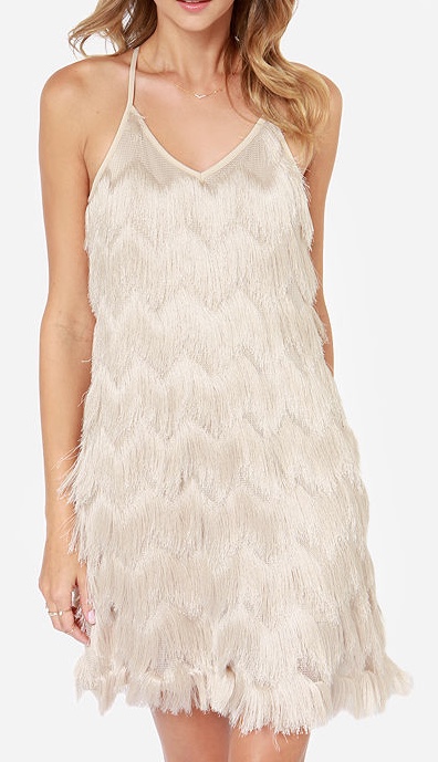 PETITES FRANGES SUR TOUTE LA ROBE ASPECT FAUSSE FOURRURE.