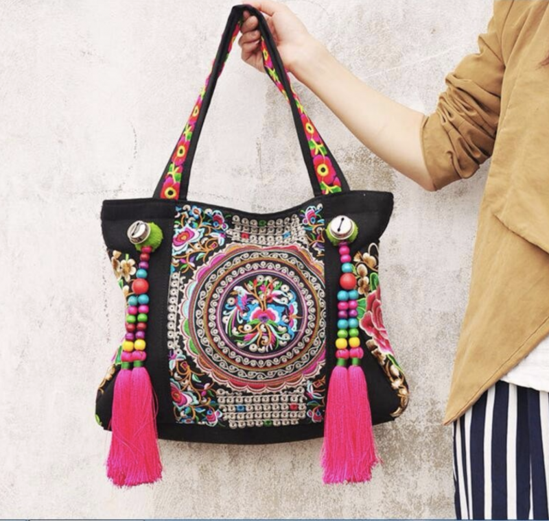 Grand sac tissu imprimé ethnique boho bohème chic SAC0195
