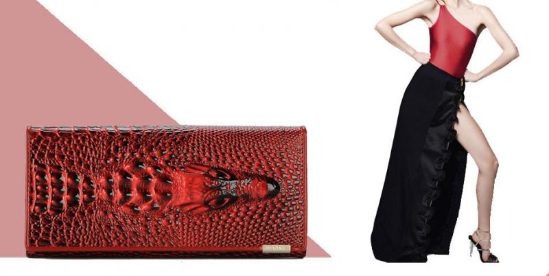 Portefeuille cuir tête crocodile boho boheme chic C0134