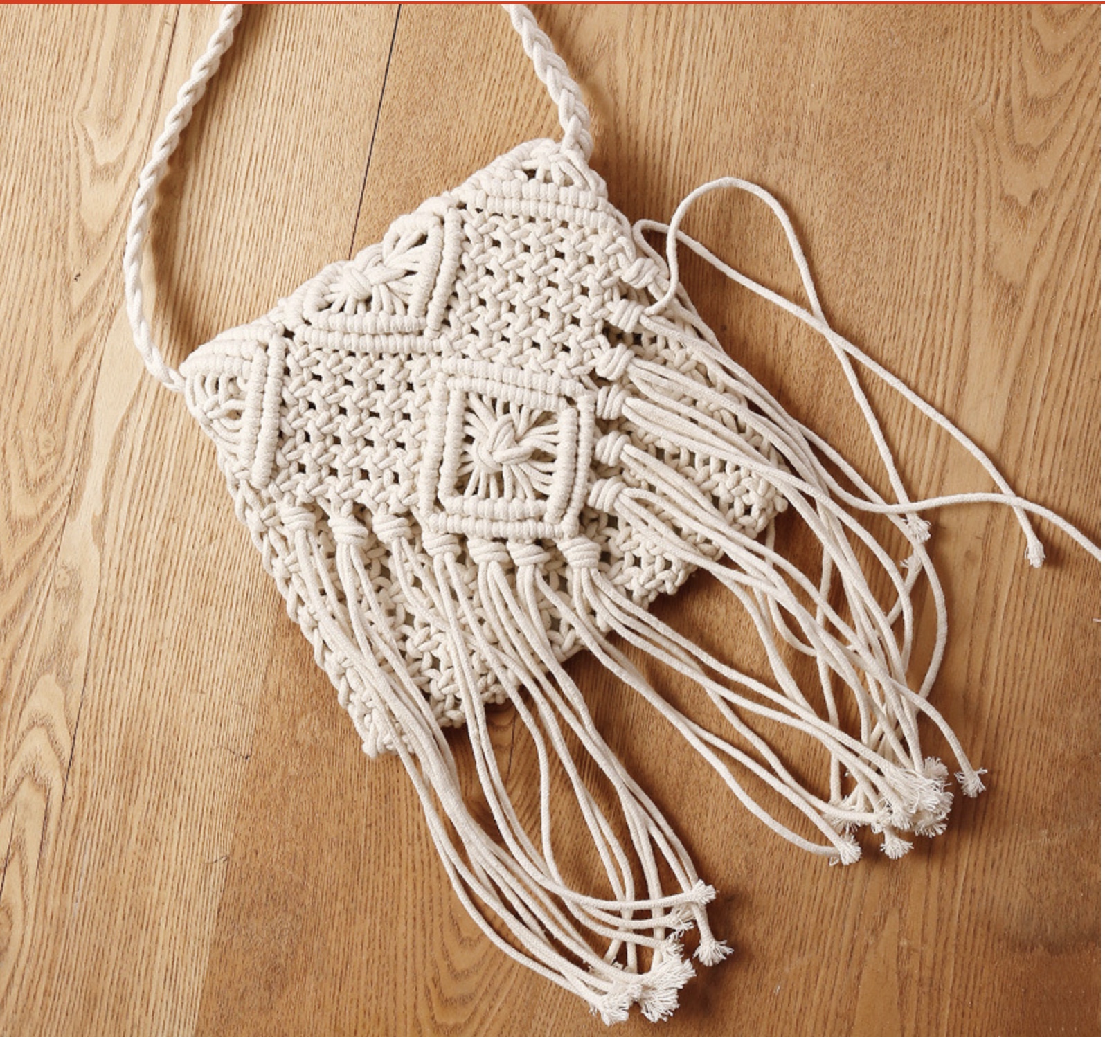 SAC A MAIN POCHETTE FRANGES CORDE TRESSEE BOHO BOHEME CHIC.