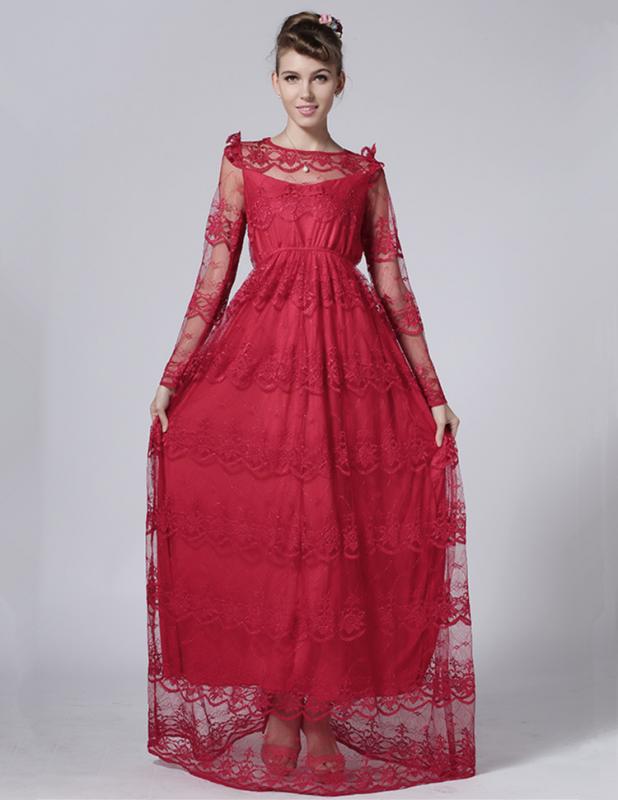 Robe longue dentelle rouge boho boheme chic dressl0667