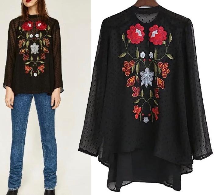 Top organza brodé fleurs boho boheme chic