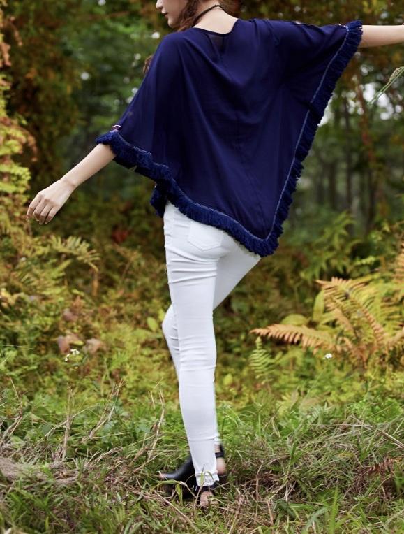 Tunique poncho brodée franges marque boho boheme chic tunic0203