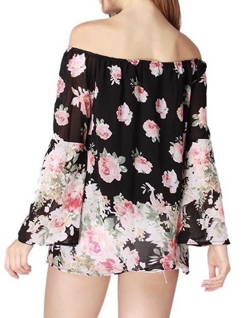 Blouse imprimé fleurs épaules dénudées boho boheme chic top0352
