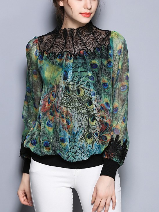 Top blouse imprimée mousseline plumes boho boheme chic top0407