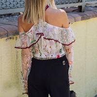 TOP BLOUSE ORGANZA BRODE FLEURS BOHO CHIC BOHEME.