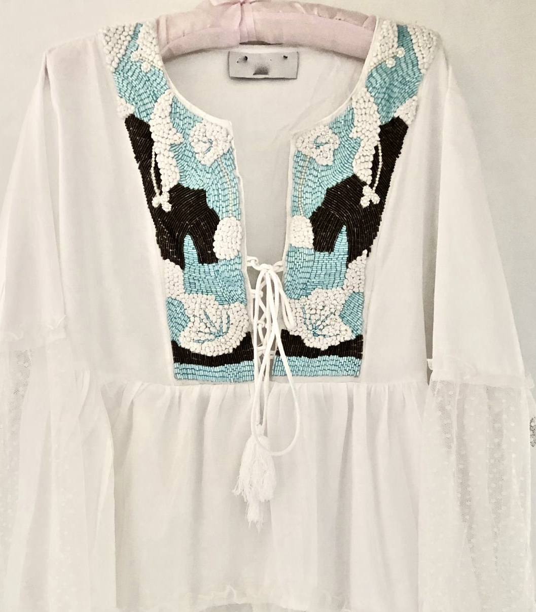 TUNIQUE BAS DENTELLE ENCOLURE PERLES BOHO BOHEME CHIC.