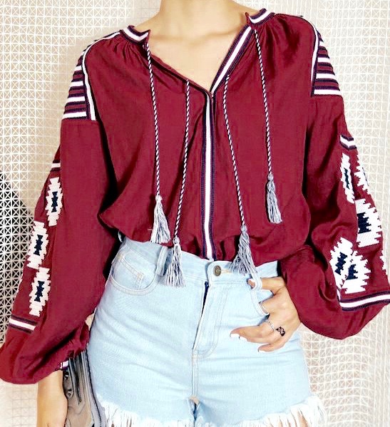 Blouse brodée manches bouffantes boho boheme chic
